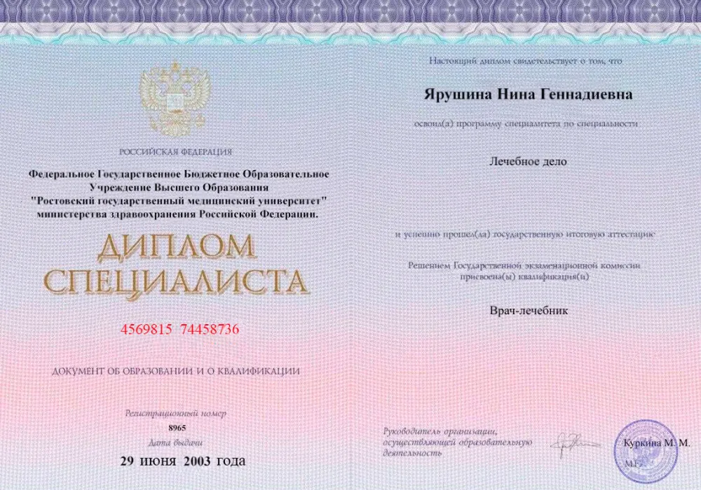 • 2003 — Ростовский государственный медицинский университет (Лечебное дело);