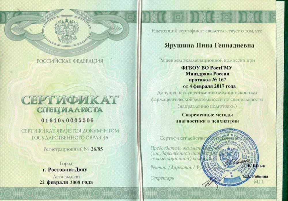 • 2006 — Ростовский государственный медицинский университет (Психиатрия-наркология).